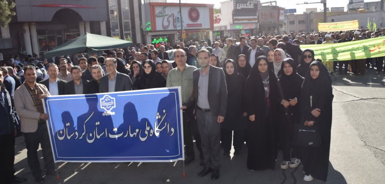 • شرکت کارکنان و دانشجویان دانشگاه ملی مهارت واحد استان کردستان در راهپیمایی یوم الله 13 آبان